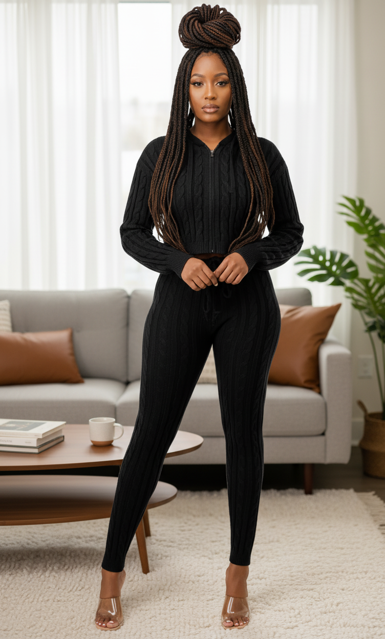 Stay cozy and coordinated with this cable hoodie sweater 2-piece set, designed for warmth and effortless style. Featuring a soft cable-knit texture, this solid set includes a relaxed-fit hoodie and matching bottoms for a polished yet comfortable look. The fabric offers gentle stretch and warmth, making it ideal for cooler days and casual layering. With its clean lines and basic design, this versatile set transitions seamlessly from lounging at home to running errands in style. A must-have for anyone seeking comfort without compromising on appearance.