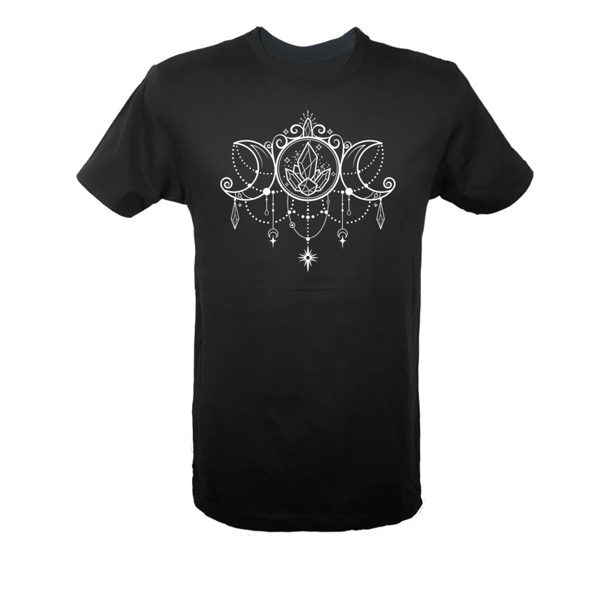 Triple Moon Goddess Black Unisex T-shirt Shirt - Infused with Moonstone Crystals
